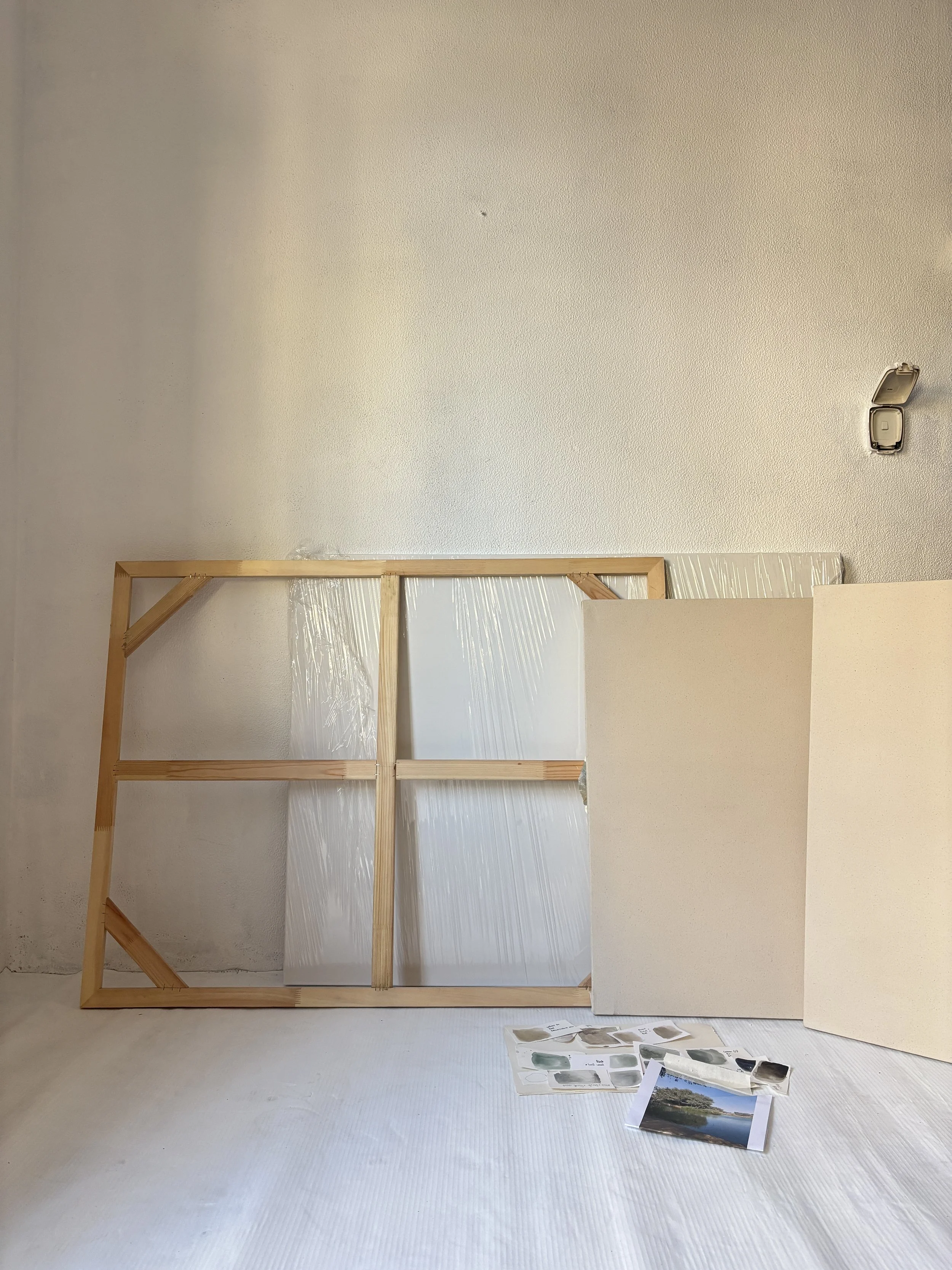 The size and format are flexible and can be customized to your space. Two or three canvases forming one larger work are also possible.